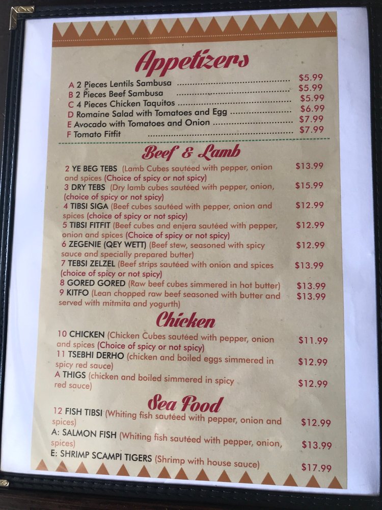 Highlighting the heart of Ethiopian tradition, the restaurant serves delectable chicken dishes, such as Tsebhi Derho, featuring tender chicken and boiled eggs simmered in a rich, spicy red sauce. Every plate comes with the signature injera, a tangy flatbread perfect for scooping. Vegetarians can revel in hearty options, ensuring every palate is delighted.